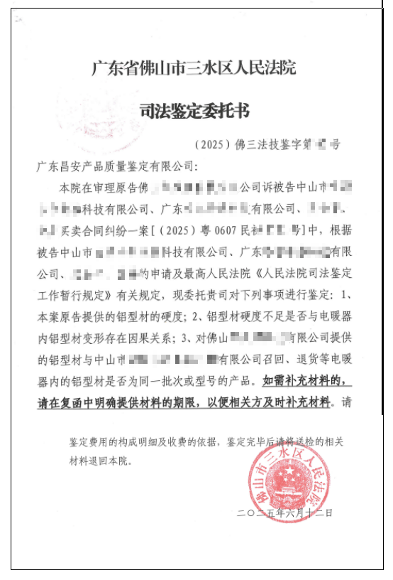 受佛山市三水区人民法院委托,对铝型材的质量进行鉴定